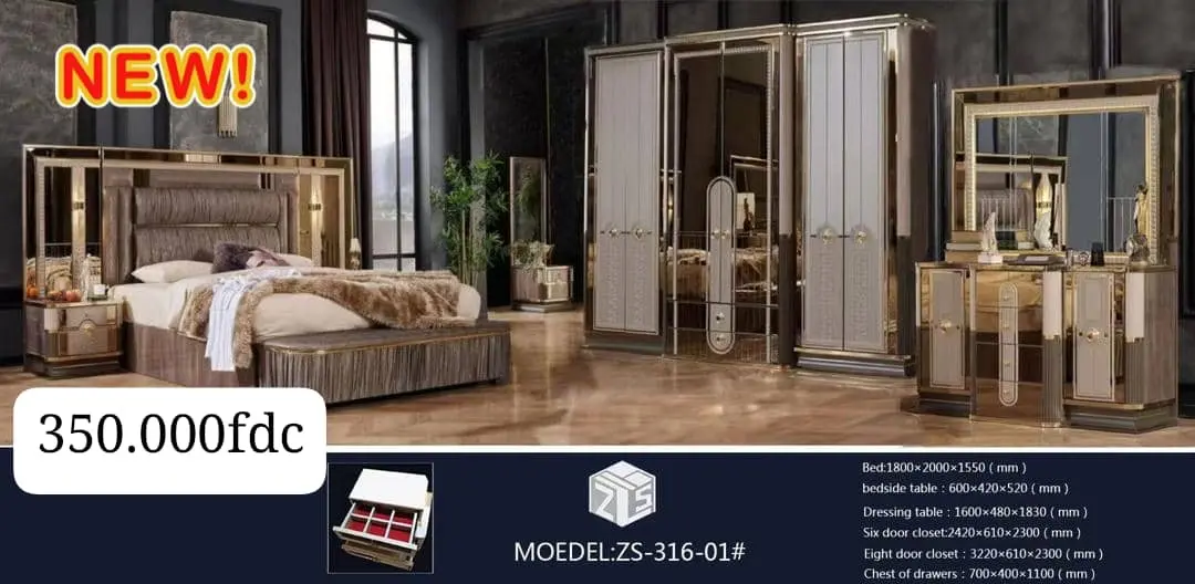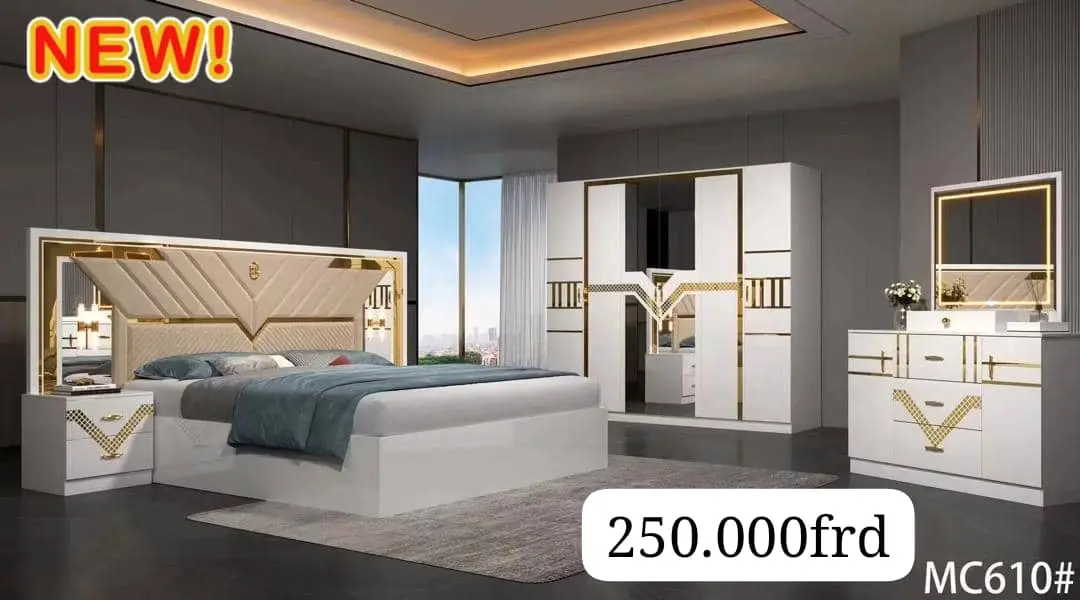 Offrez-vous une chambre à coucher digne des plus beaux intérieurs grâce à notre superbe ensemble de meubles au design chic et intemporel. Cet ensemble transforme votre espace en un lieu où le raffinement et le bien-être s'accordent à la perfection.